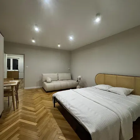 In kompletter Küche gibt es auch einen Herd und einen Geschirrspüler. Die Unterkünfte liegt in einer 700 Meter Entfernung von der U-Bahn-Station Mlynow sowie in unmittelbarer Nähe vom Bahnhof Warszawa Mlynow. Das Apartment bietet seinen Gästen eine Terrasse.